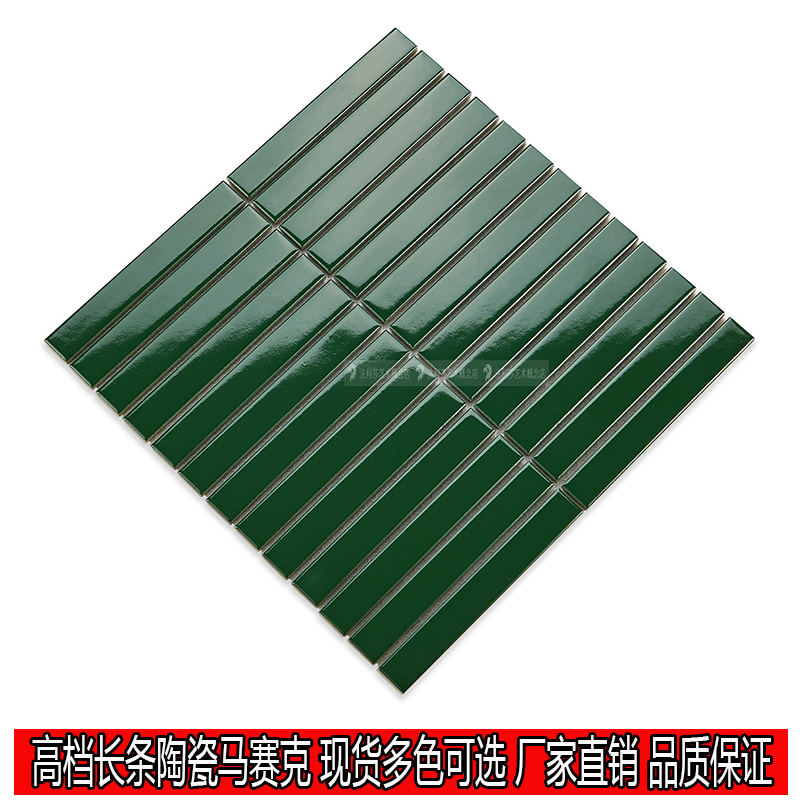 White ceramic mosaic long strips of ink green black toilet bar pool floor decoration shower room