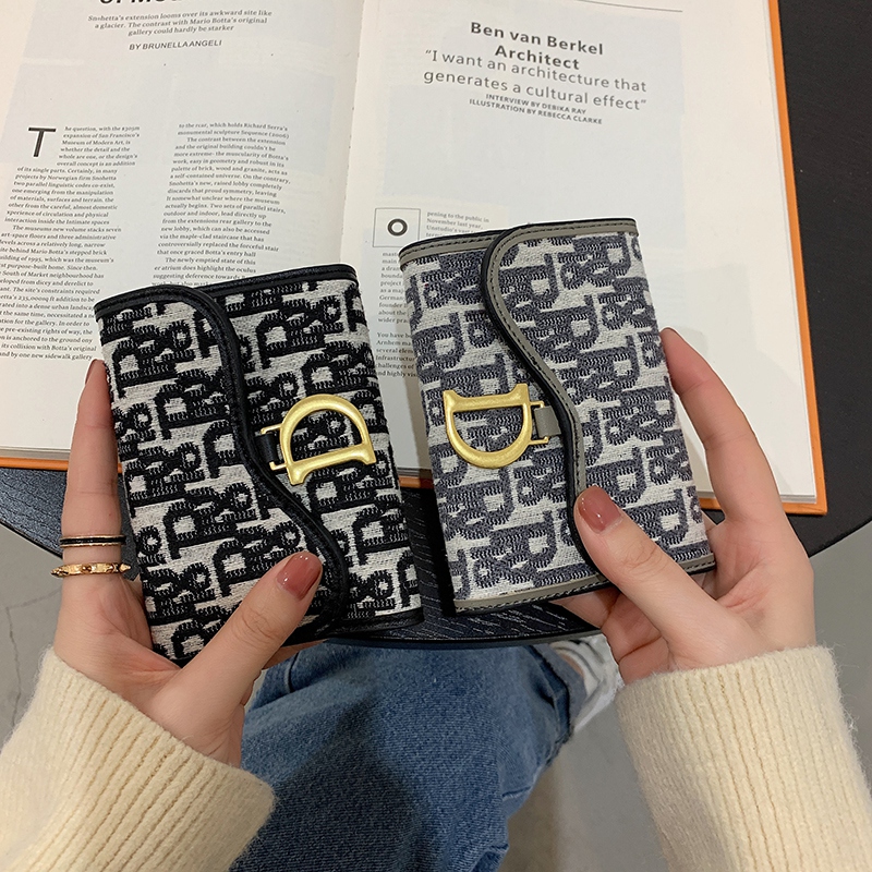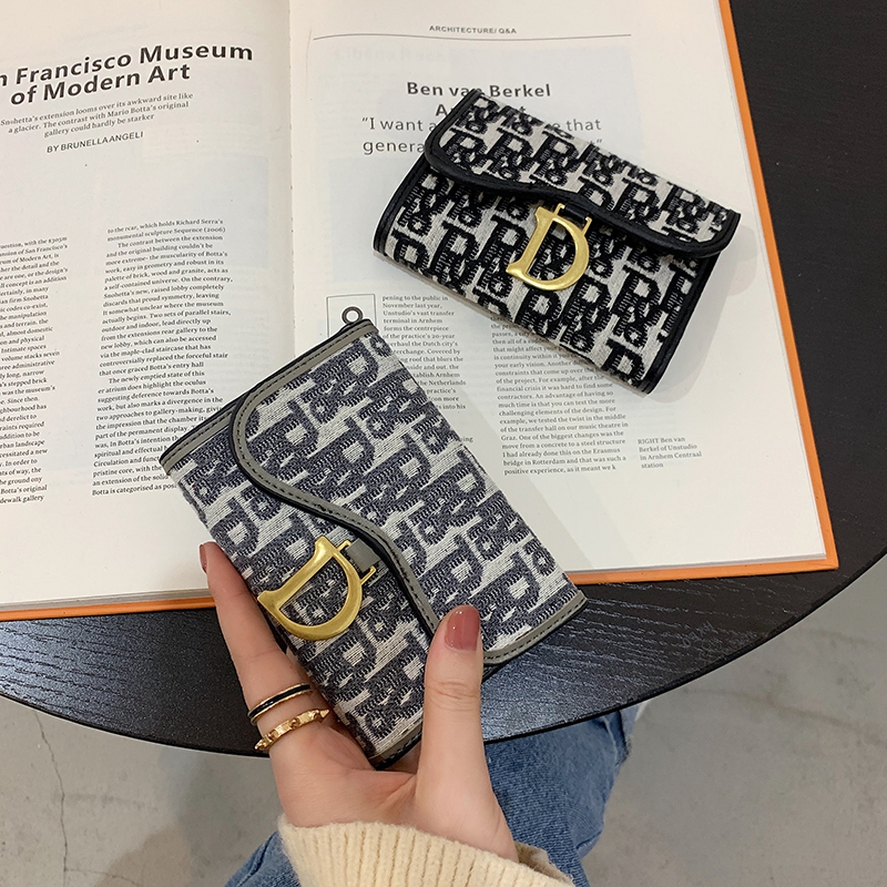 New Korean version printed canvas short card bag zero wallet woman type small folding buckle multi-position organ cutting sleeve