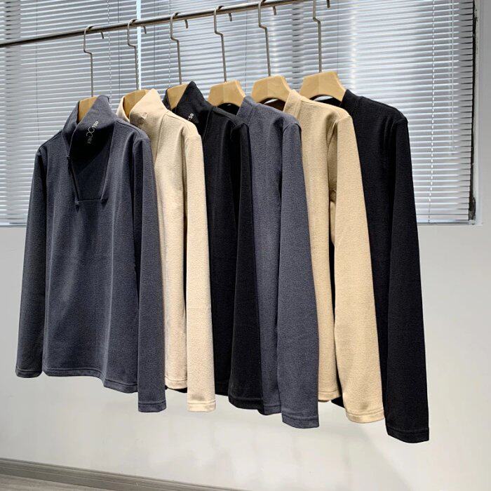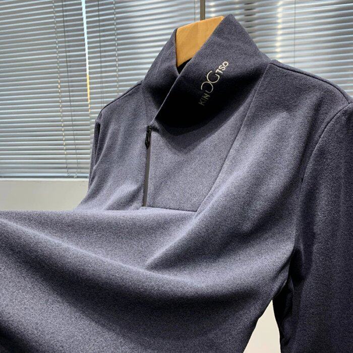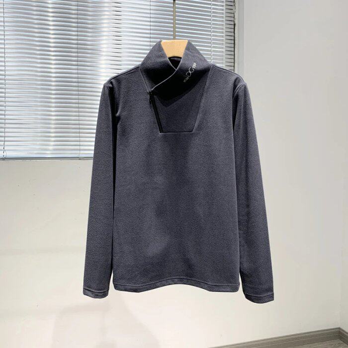 Niche design plus velvet and thick winter men's simple functional style all-match warm pullover sweater tide 4682