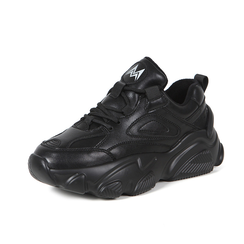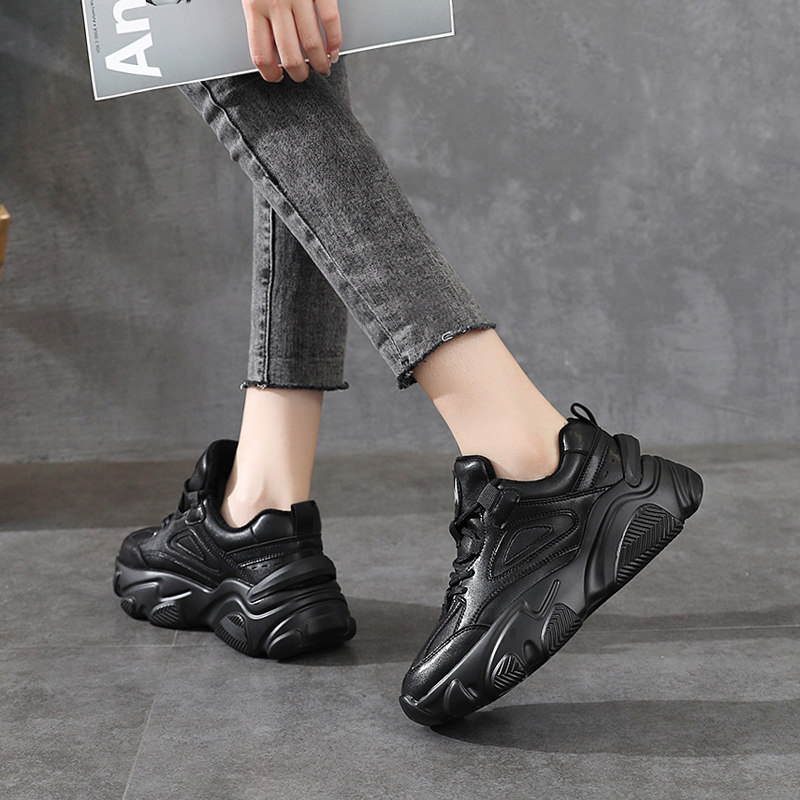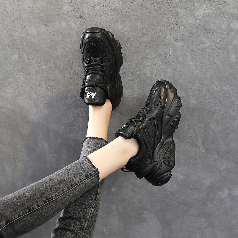 South Korean Chauchio Superfire Old Daddy Shoe Girl Stide 2020 new genuine leather 100 hitch black plus velvet sports casual shoes
