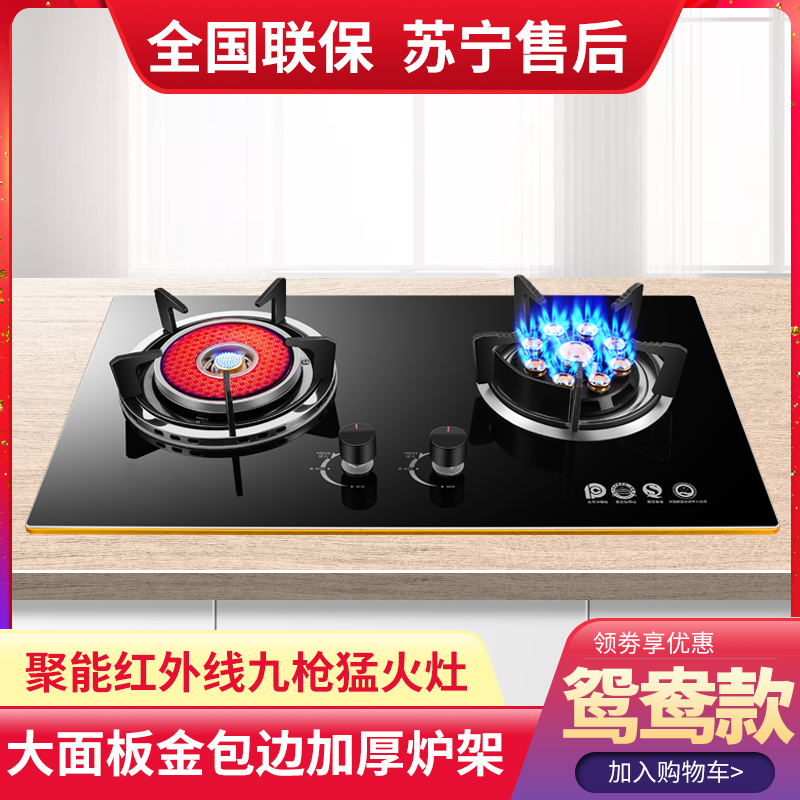 Imported infrared energy-saving energy-saving double gas stove Infrared nine-chamber Menghu Mandarin duck double gas stove Infrared nine-chamber Menghu Mandarin duck timed double gas stove