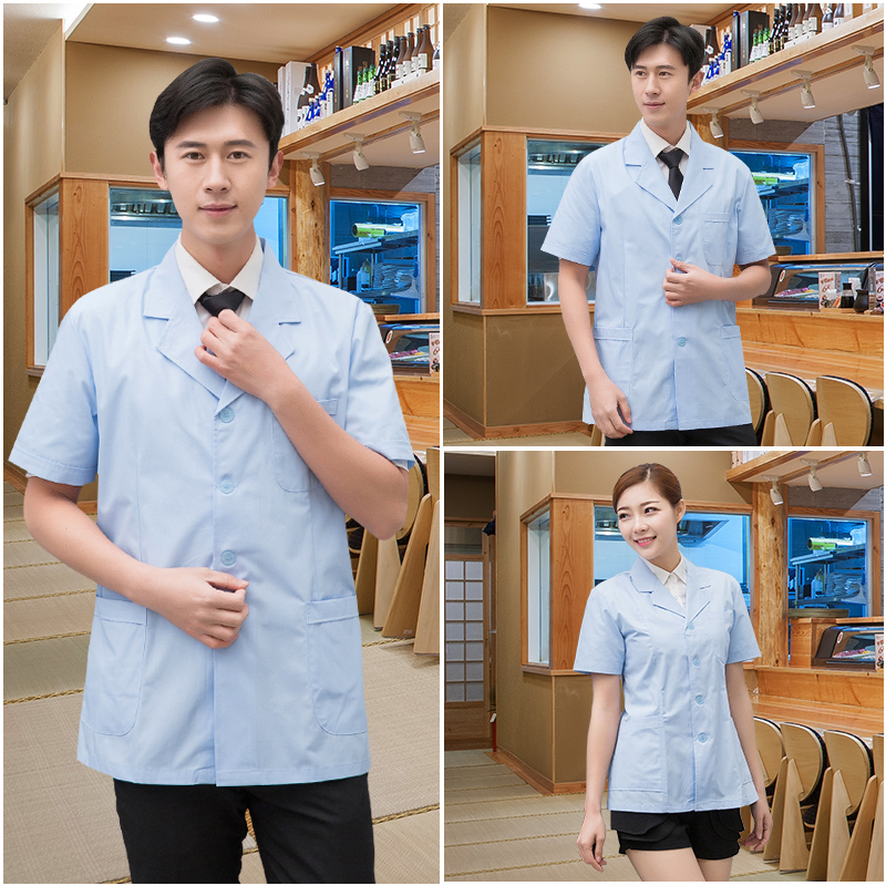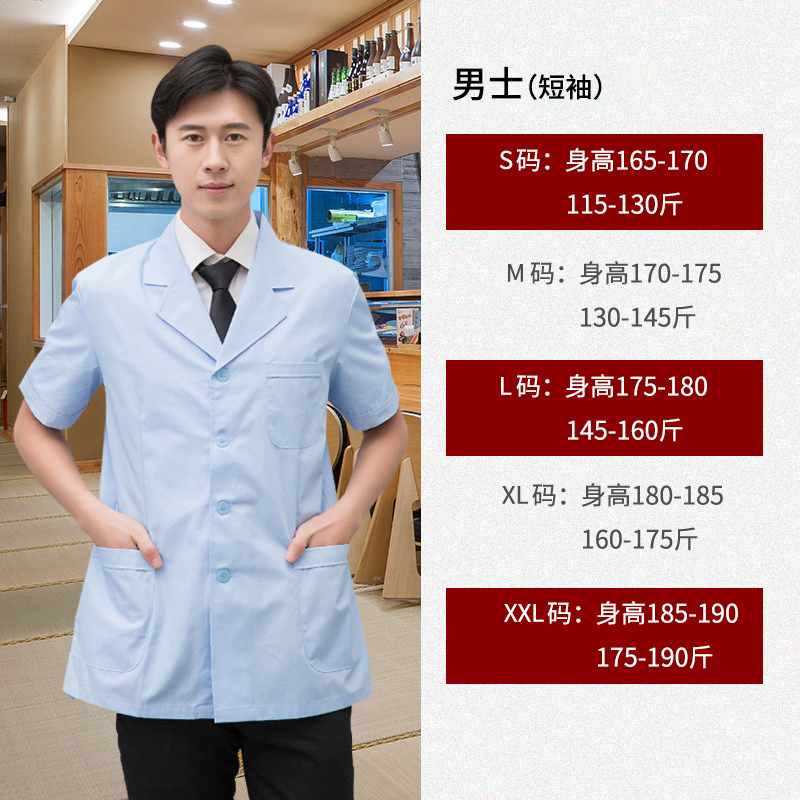 White coat of coat Short-style half-body doctor experimental suit Male short sleeve blue summer small coat oral cavity dental work suit-Taobao