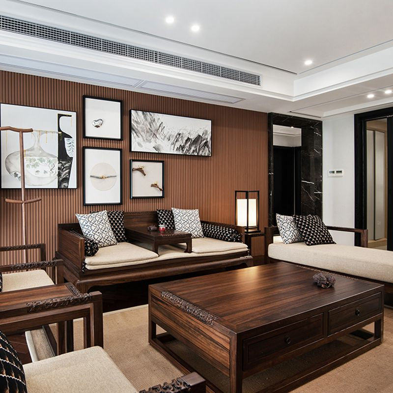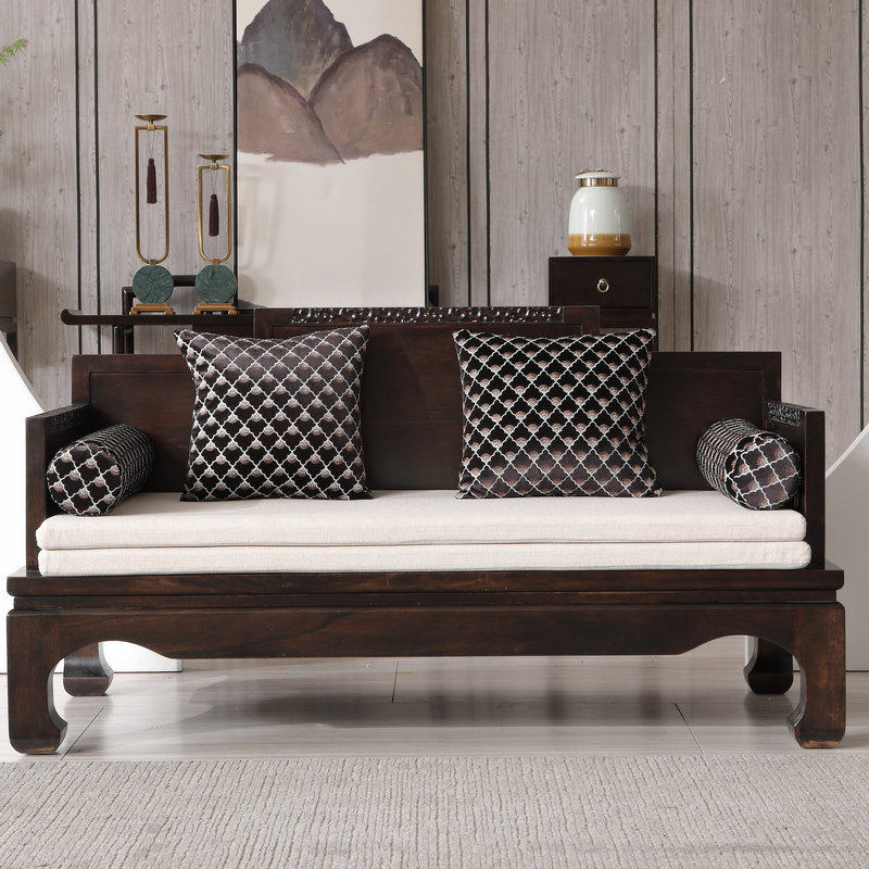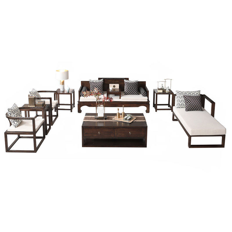 New Chinese style solid wood sofa combination large and small apartment type ebony wood black sandalwood retro fabric villa high-end living room furniture