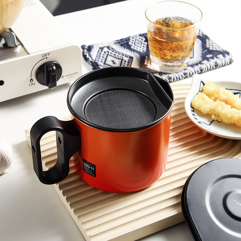 Artist imported from Japan Wannian orange red 0 8L oil pot oil filter pot stainless steel