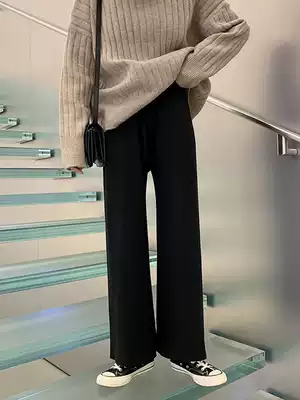 Pregnant women's pants spring and autumn wear fashion loose large size trendy mother high-end maternity clothes knitted bottoming wide-leg pants drape