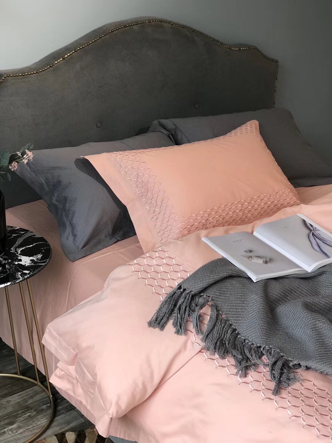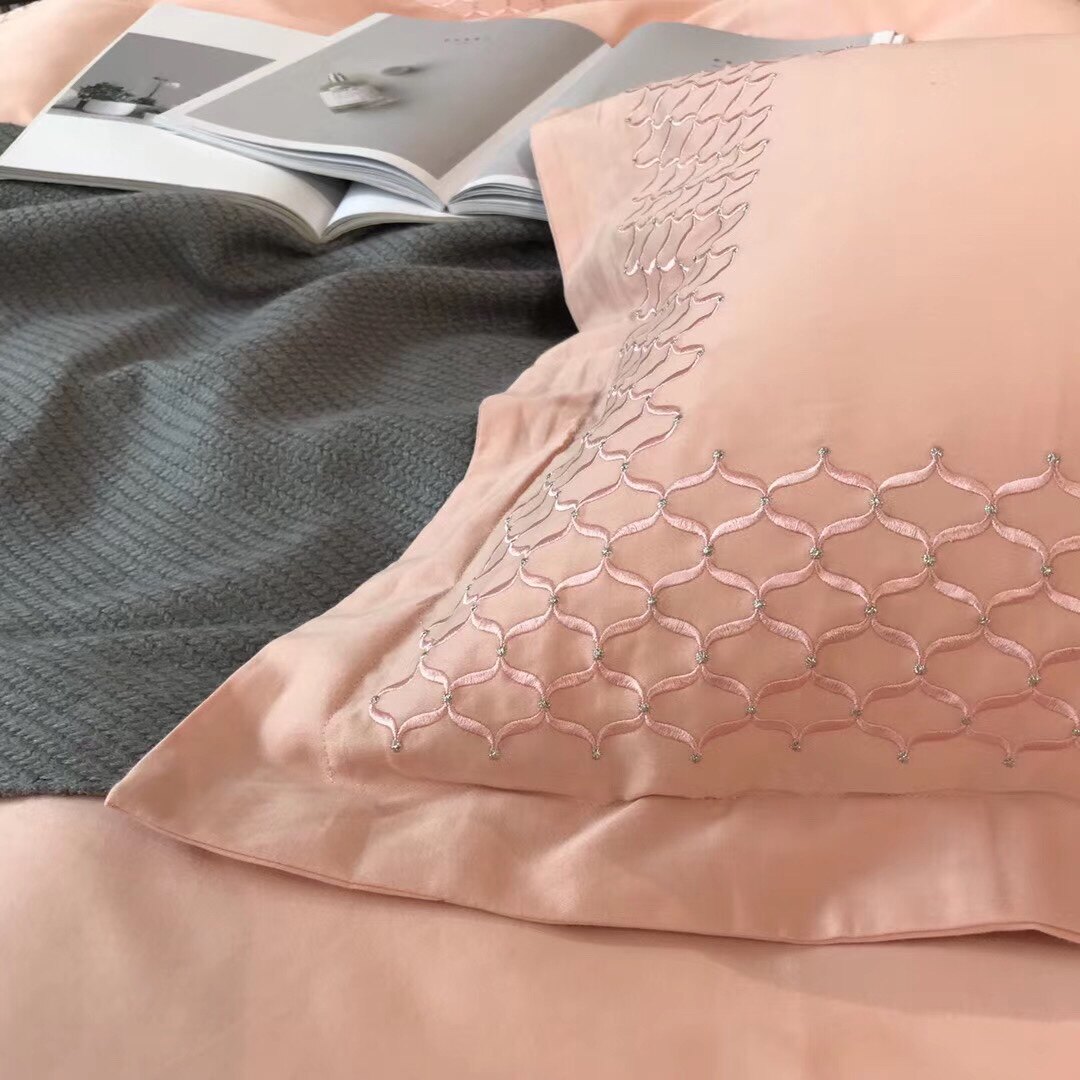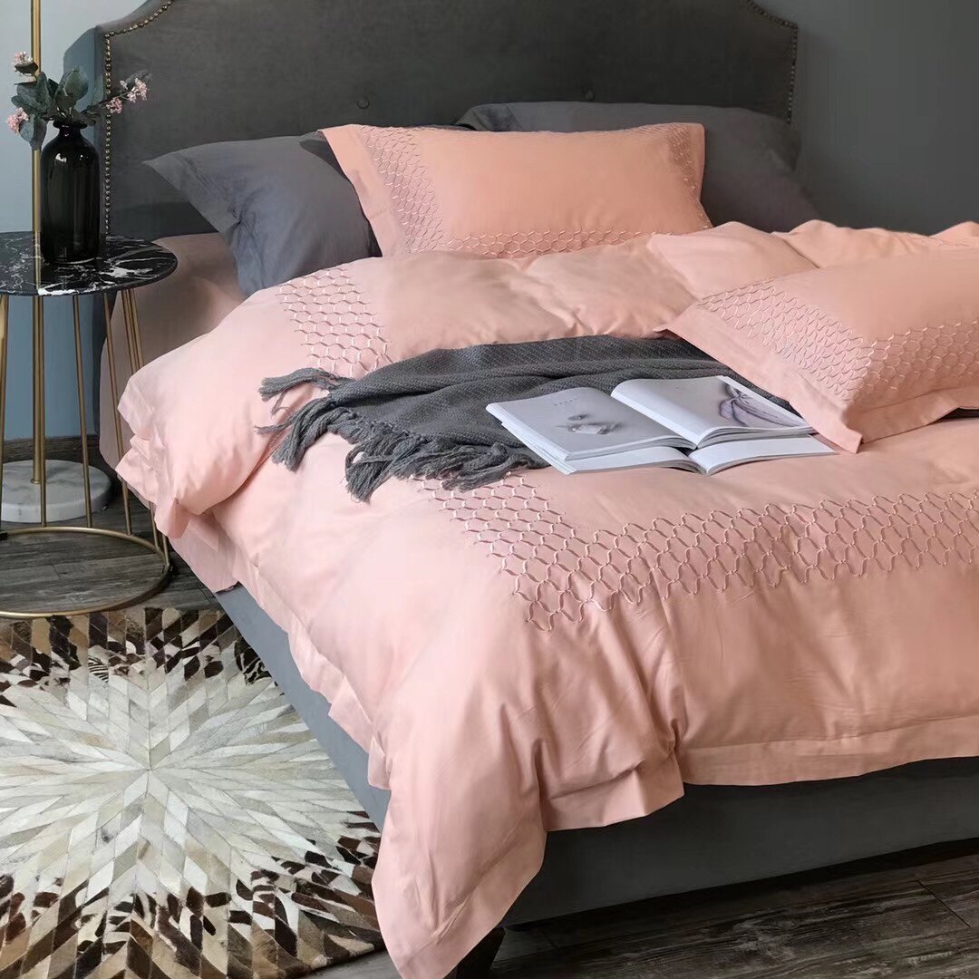 North American Minimalist Luxurious Work Embroidered four pieces Enlarged Bed 100 Pure Cotton Mill Wool Thickened soft fabric