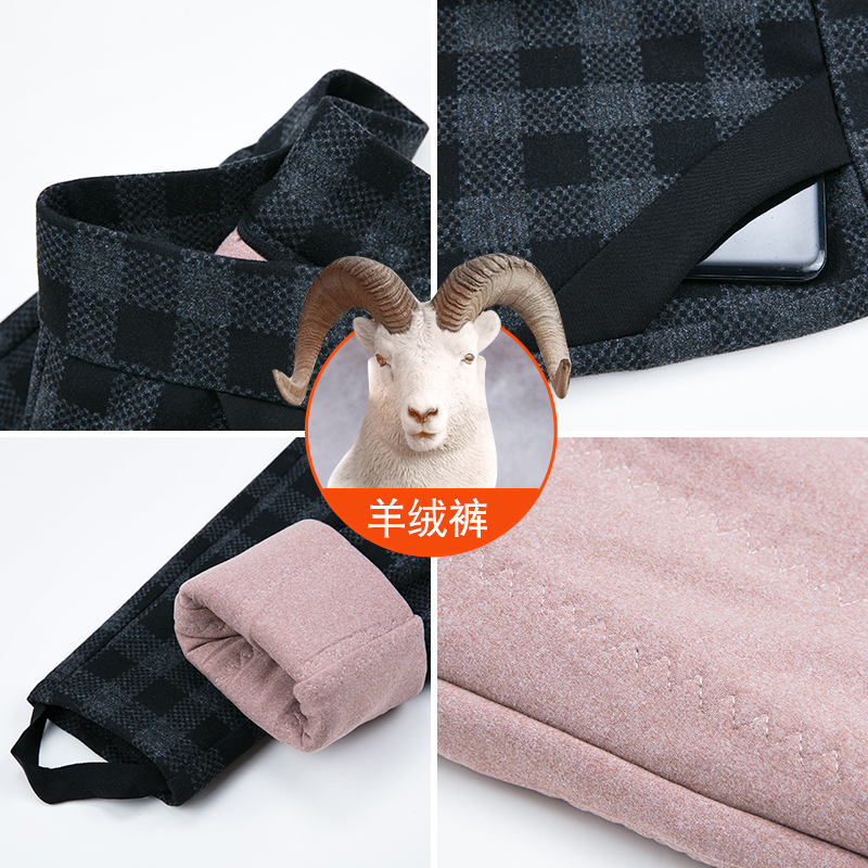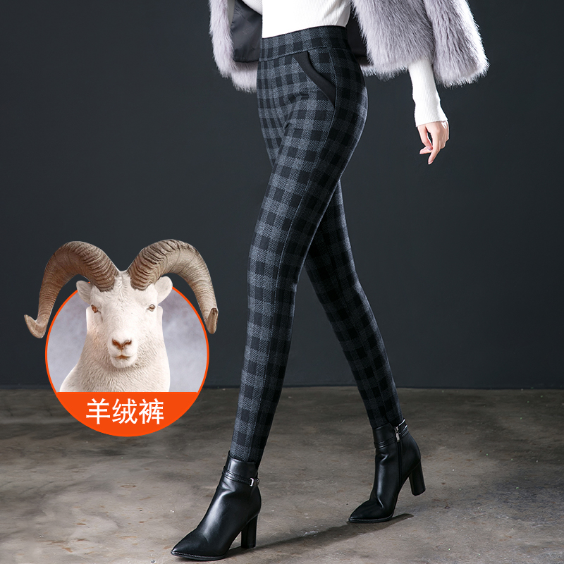 Autumn-winter ladies cashmere pants high waist plaid with inner lap pants garnter thickened outside wearing winter warm mama wool trousers