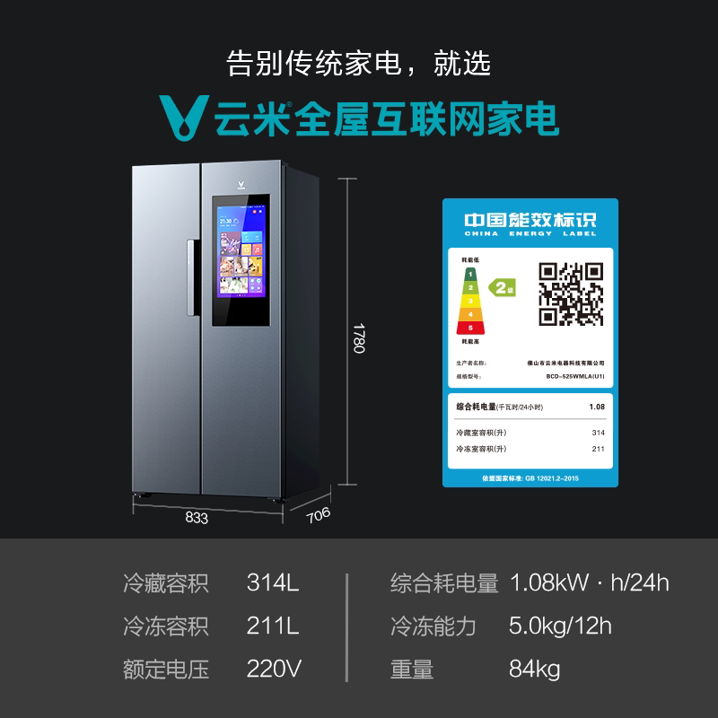 Yunmi 525L open door large screen smart refrigerator 10KG washing and drying self-feeding washing machine ice washing set