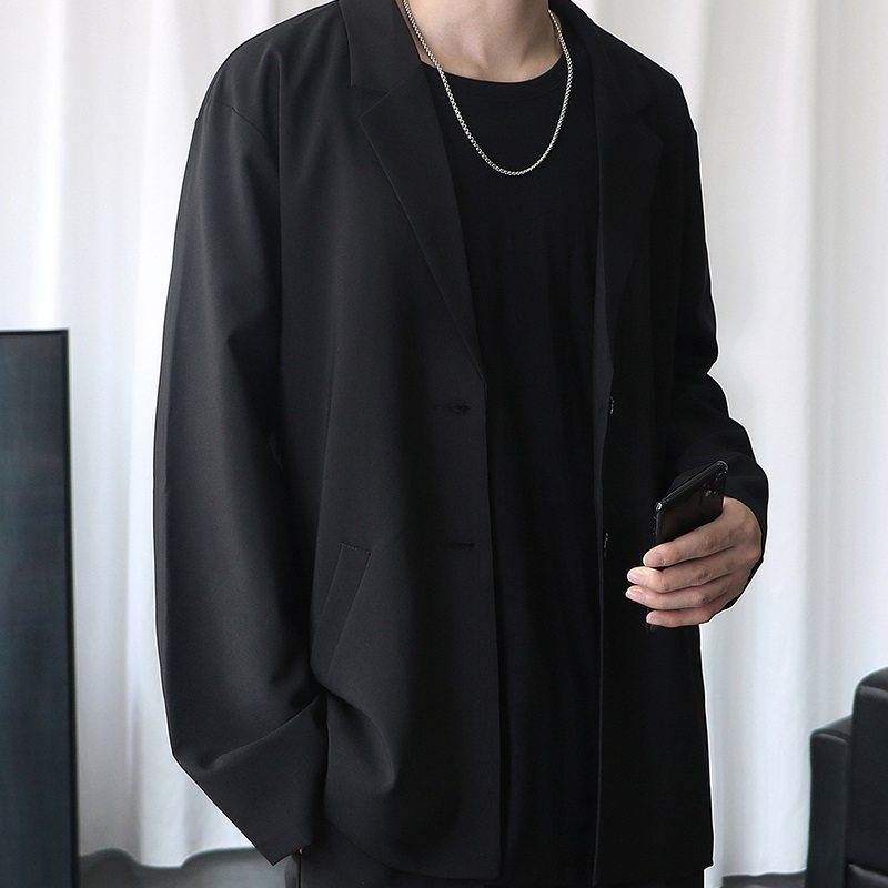 Casual blazer men's winter Hong Kong style big size Korean trend black Ruffian handsome suit suit jacket ins ins
