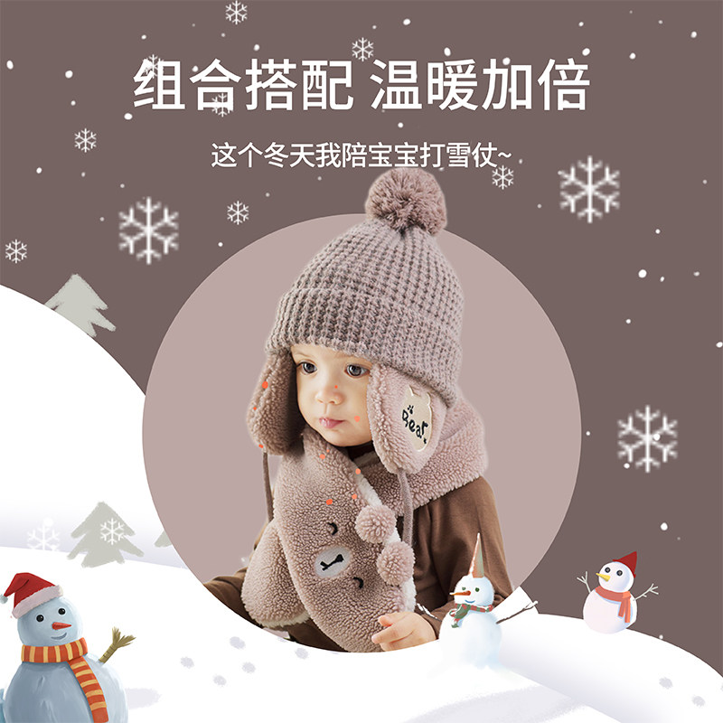 Fun leather baby bear hat autumn and winter Children winter wool hat baby boy and girl ear protection knitted hat scarf