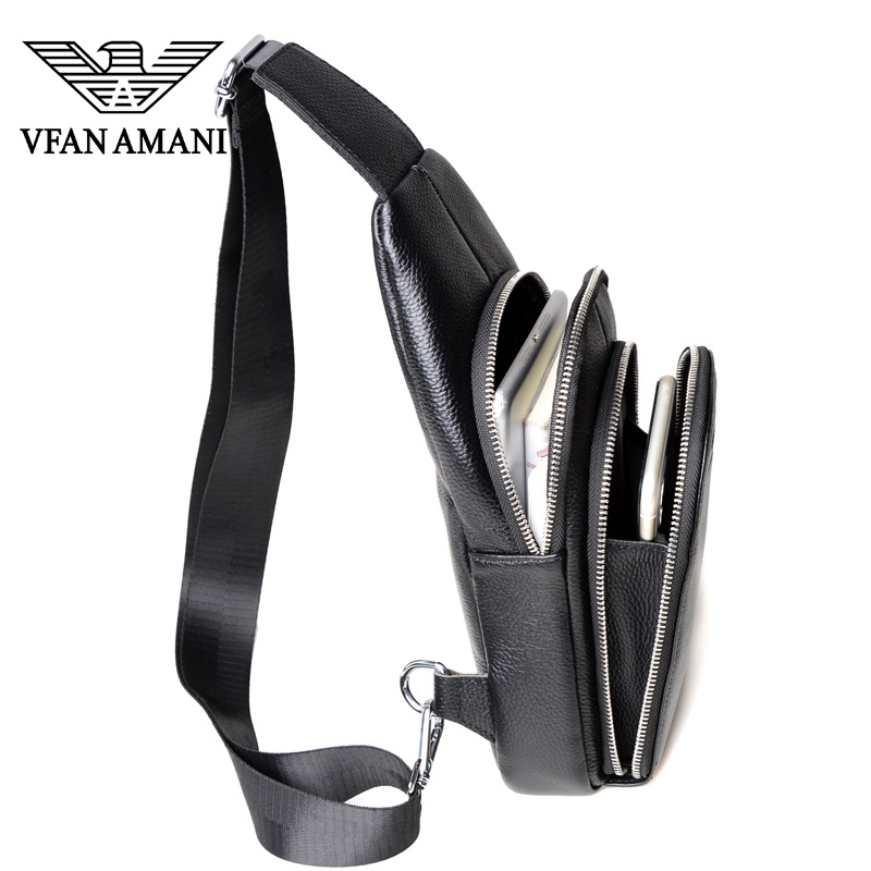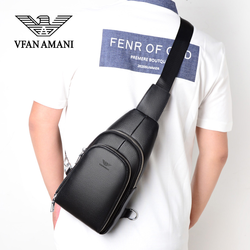 Chest Bag Men Genuine Leather Multifunction Casual Men Youth Head Layer Bull Leather Chest front small Shoulder Bag Single Shoulder Diagonal Satchel Boomer