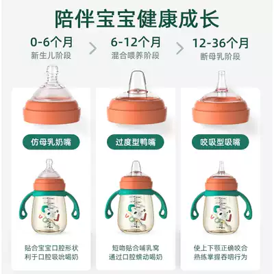 Big baby straw type baby bottle ppsu wide mouth diameter anti-flatulence Newborn baby children over 1 year old 3 duckbill drinking milk