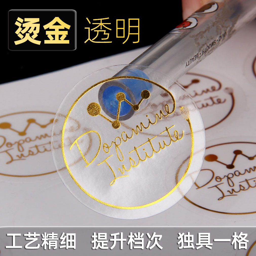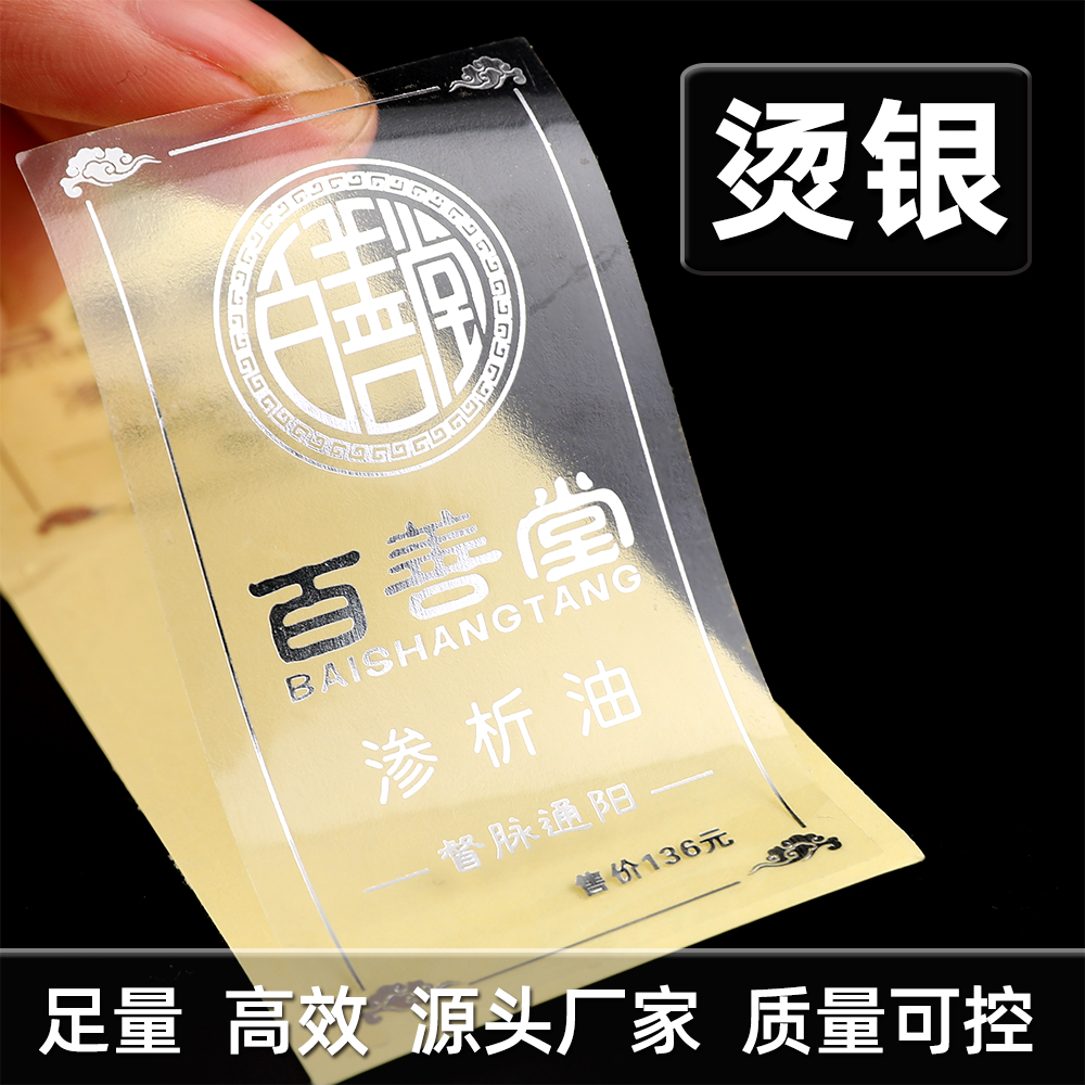 Printing white ink custom waterproof transparent self-adhesive logo label sticker bronzing printing PVC sealing bottle sticker