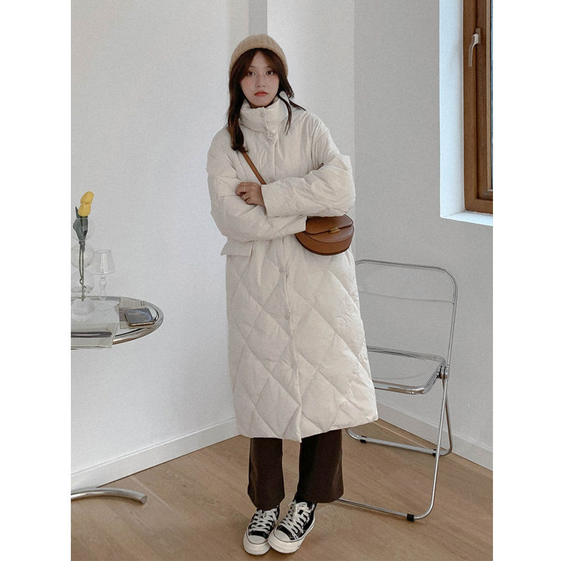 2020 Winter New White Cotton Served With Knee Medium Long Version Rhombus Plaid Loose Display Slim Cotton Coat Jacket Woman