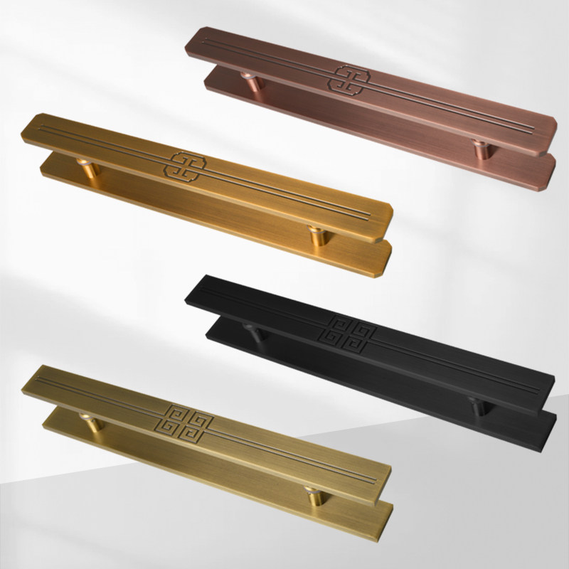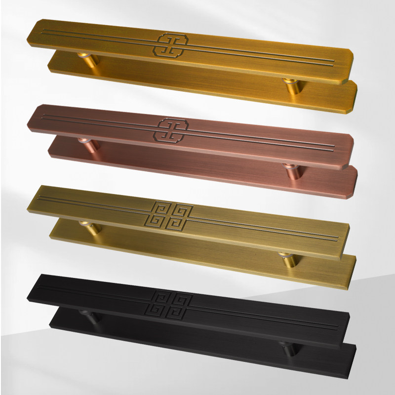 Large door handle ancient bronze color Della takes the new Chinese back grain push-pull wood door to handle the handrail double switch Chinese large door handle