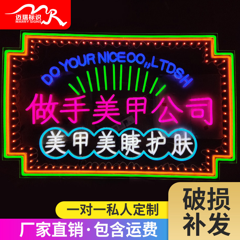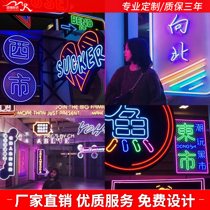 Manufacturers customized led Hong Kong-style neon red wall luminous word ins decorative bar modeling lamp led mille-feuille mirror