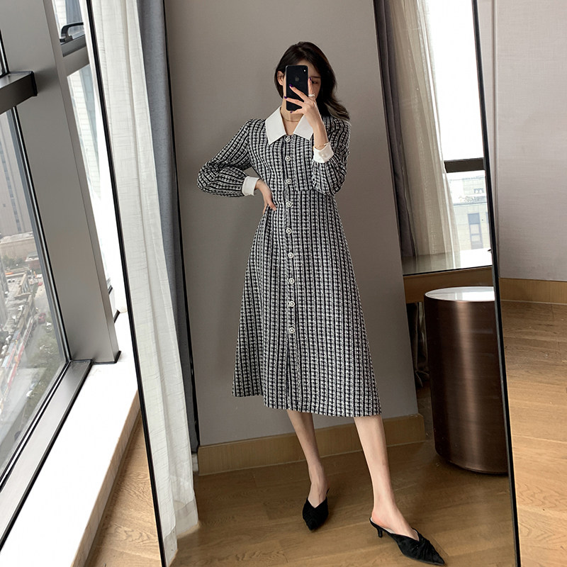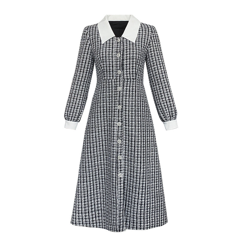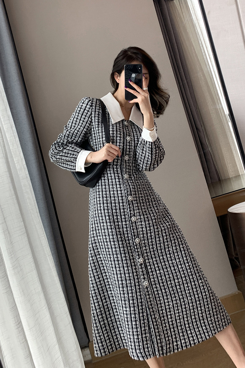FT GUOGE Xiaoxiangfeng dress 2022 autumn and winter new French retro temperament goddess fan knee-length dress