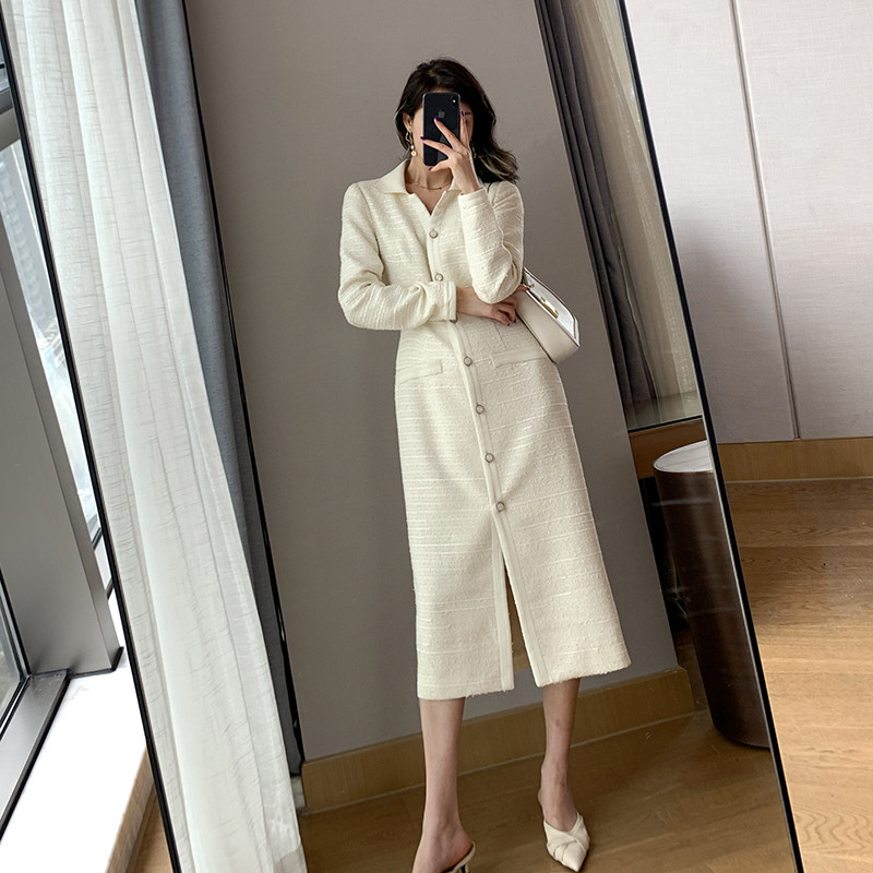 Guoge custom white dress 2023 autumn new French style retro temperament goddess Fan Xiaoxiang wind dress