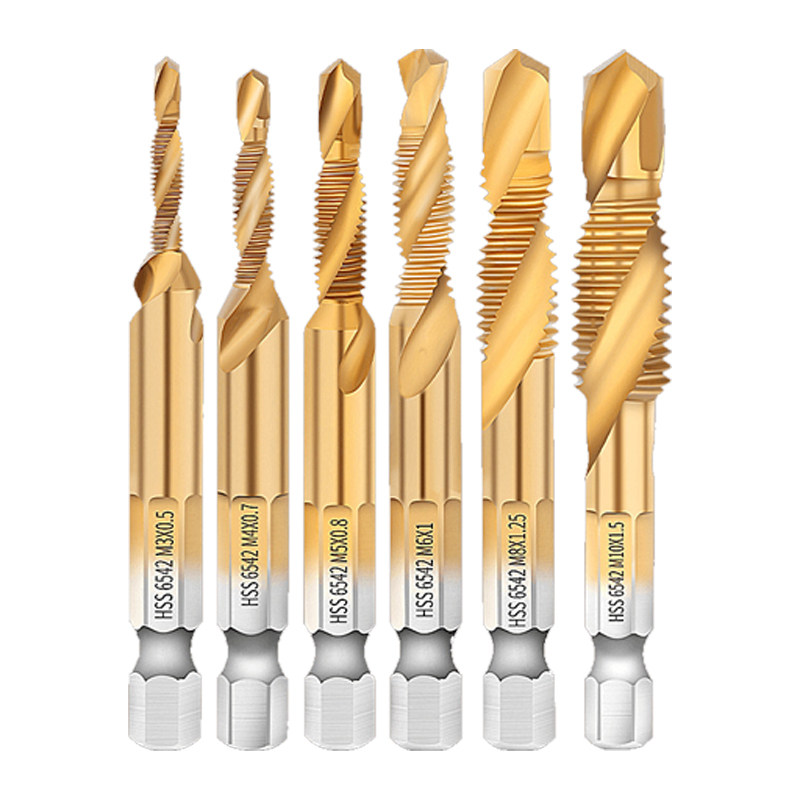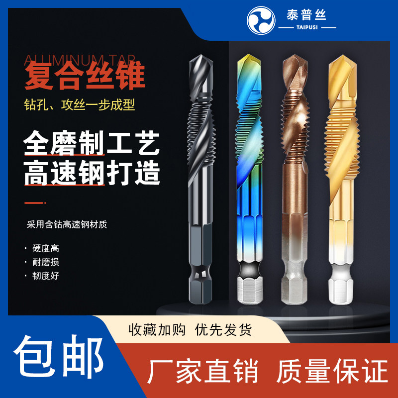 Drilling and tapping integrated composite screw tapping pneumatic drilling and tapping integrated drill bit hexagonal shank screw tapping titanium-plated screw tapping set
