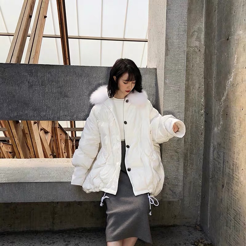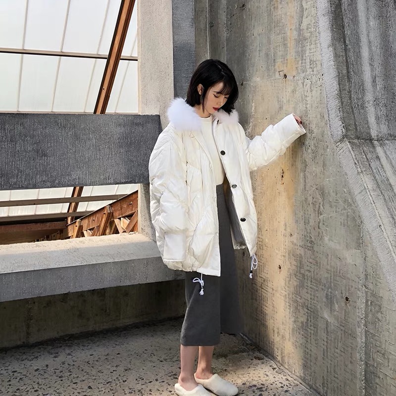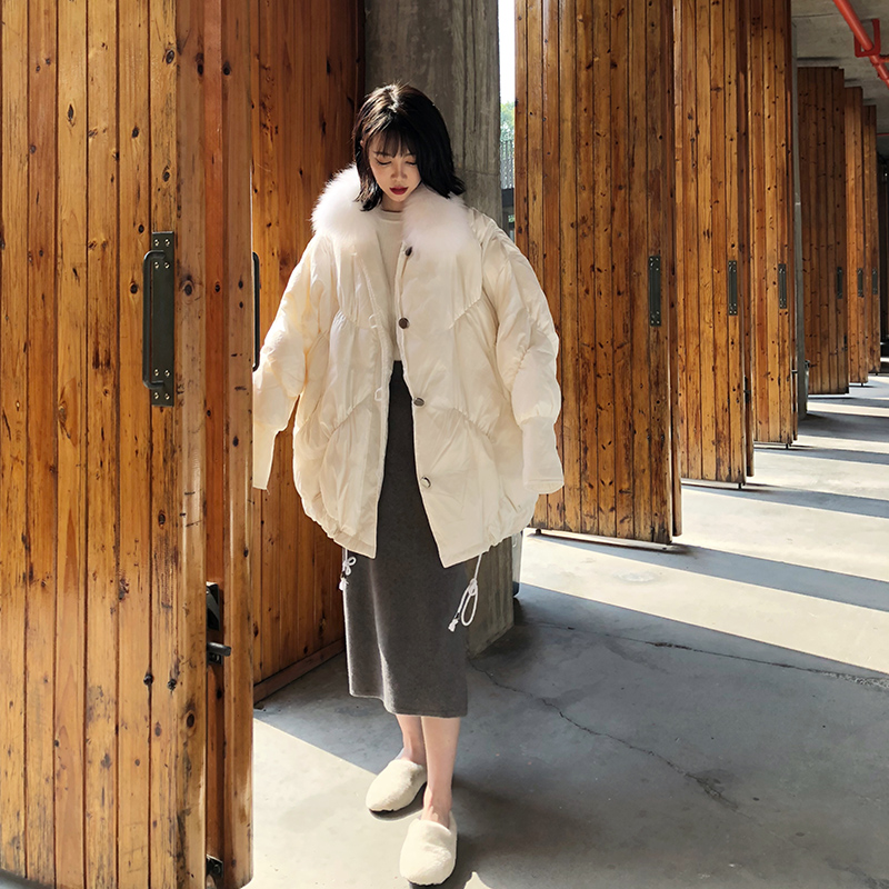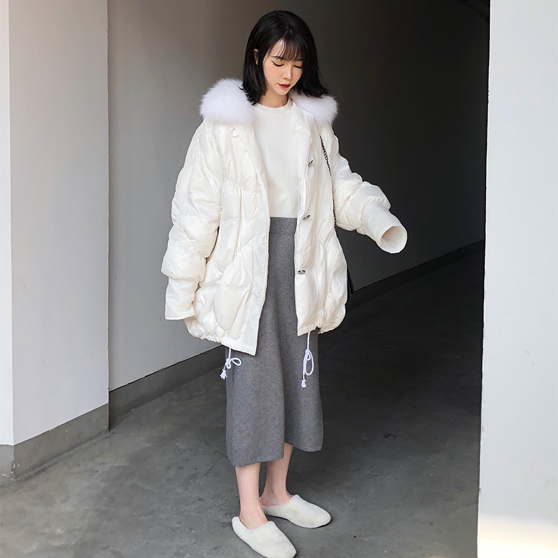 Down jacket women's white duck down medium long winter new style temperament white versatile loose thin cotton coat women's tide