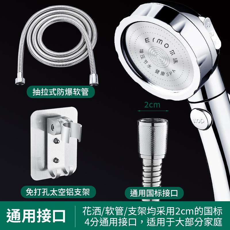 (Three-speed strong pressurization one key water stop) - electroplated silver + 2 meters explosion-proof tube