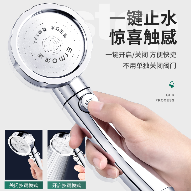 (Three-speed strong pressurization one-button water stop) - electroplated silver