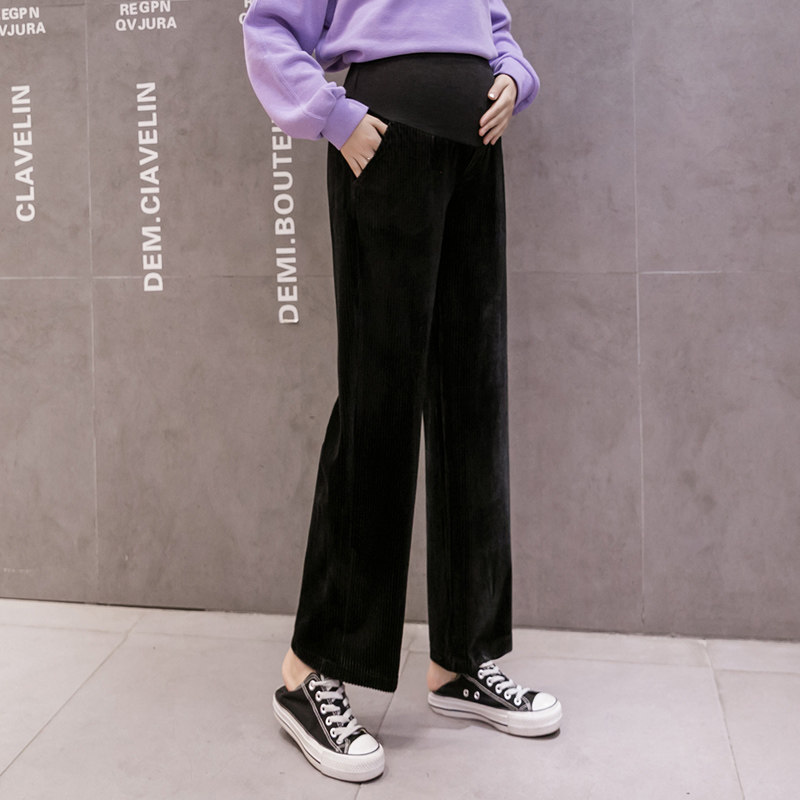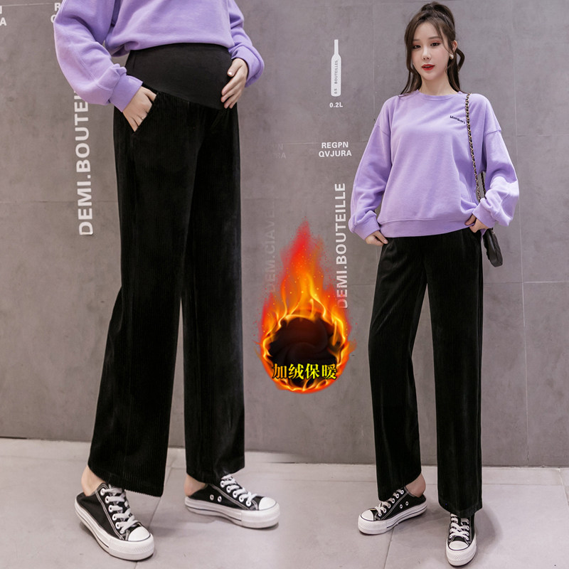 Maternity pants winter thick plus velvet outer wear autumn and winter fashion trendy mom new trousers loose winter 2020 black