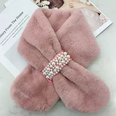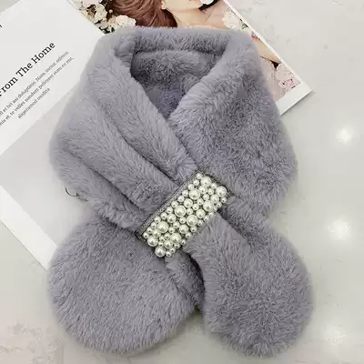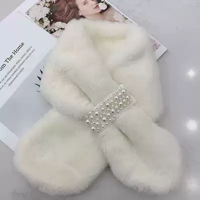 Fluffy collar scarf small collar winter female pearl wild cute girl student imitation rex rabbit plush Korean version to keep warm