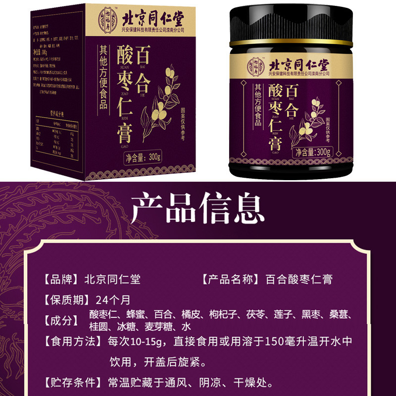 Beijing Tongrentang Lily Suanzaoren Cream Herbal Cream Honey Poria, Mulberry Shen An Sleeping Tea Official Website 300g