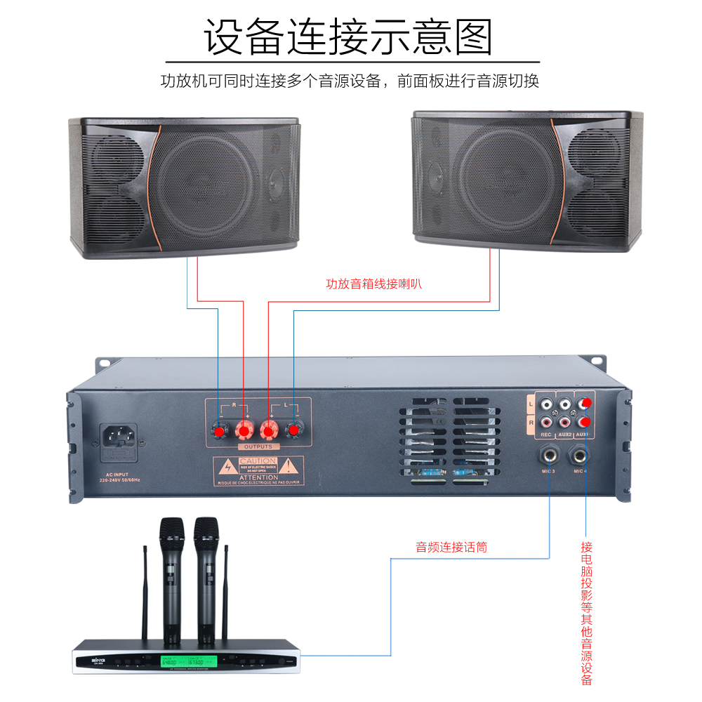 Card Bag Speaker Karaoke stage Conference Background Music rack power amplifier All2 * 300W Bluetooth USB