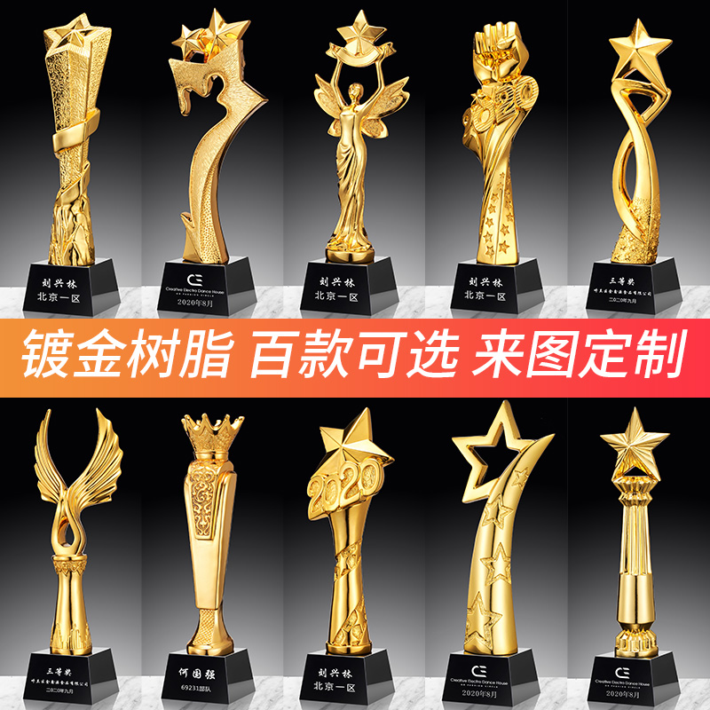 Resin Crystal Trophy Custom Made Metal Thumbs Pentagram Pentacle Wooden Authorized basketball Annual Meeting Medals Petty gold
