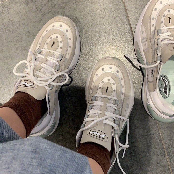 China Li Ning v8 Women Shoes Grey Powder Lovers Casual Walking Show Style Wind Bells Grey Old Daddy Shoes Sneakers ARHP128