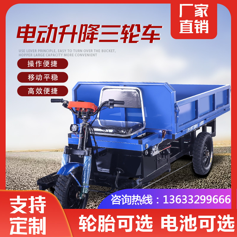 Electric tricycle lifting car flatbed truck transporter hydraulic self-unloading diesel vehicle orchard breeding high caravan labrickshaw