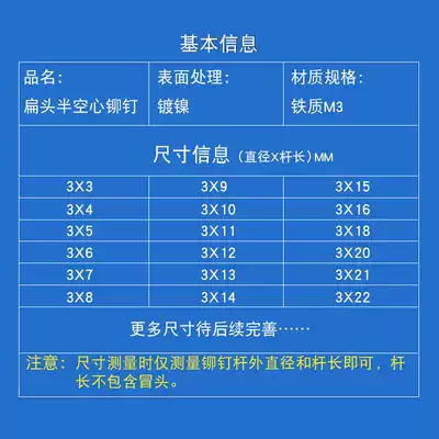 Semi-hollow iron RIVETS 3MM DIAMETER iron nickel-plated hollow nails small liudin liudin flat semicircular flat head manufacturer