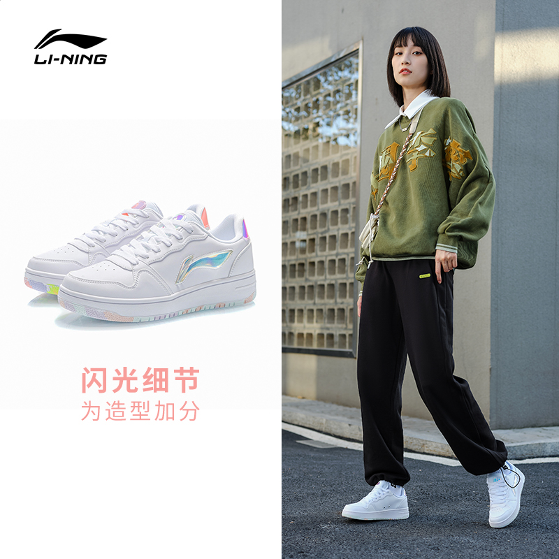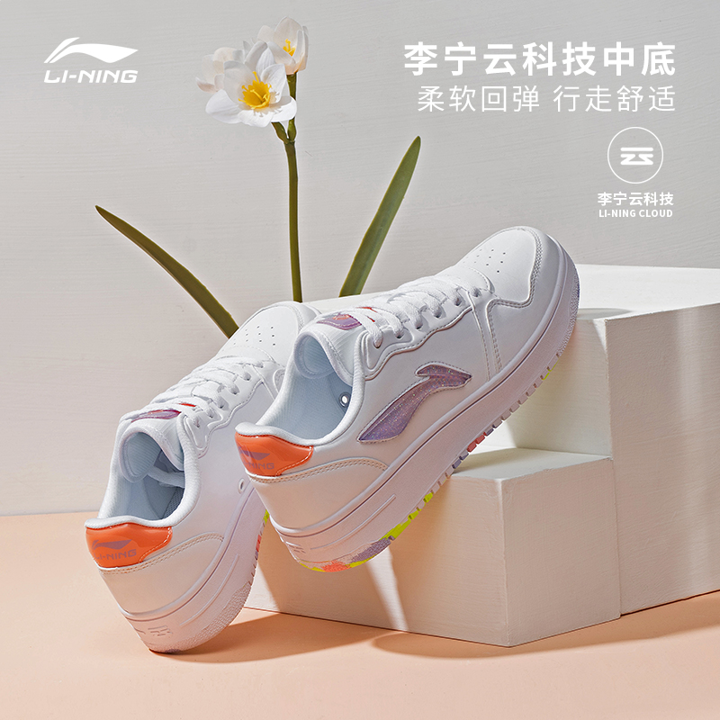 Li Ning Casual Shoes Women Shoes Casual Board Shoes Summer Graffiti Shoes Students Flat Bottom Small White Shoes Low Help Sneakers Women
