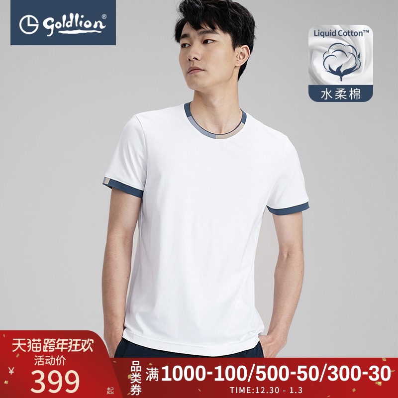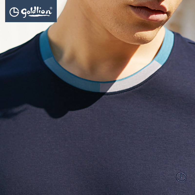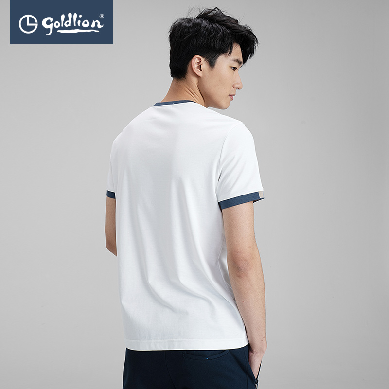 Jinlilah 2021 Spring/Summer New Men's Water soft cotton stitching color color thread collar short sleeve round neck T-shirt