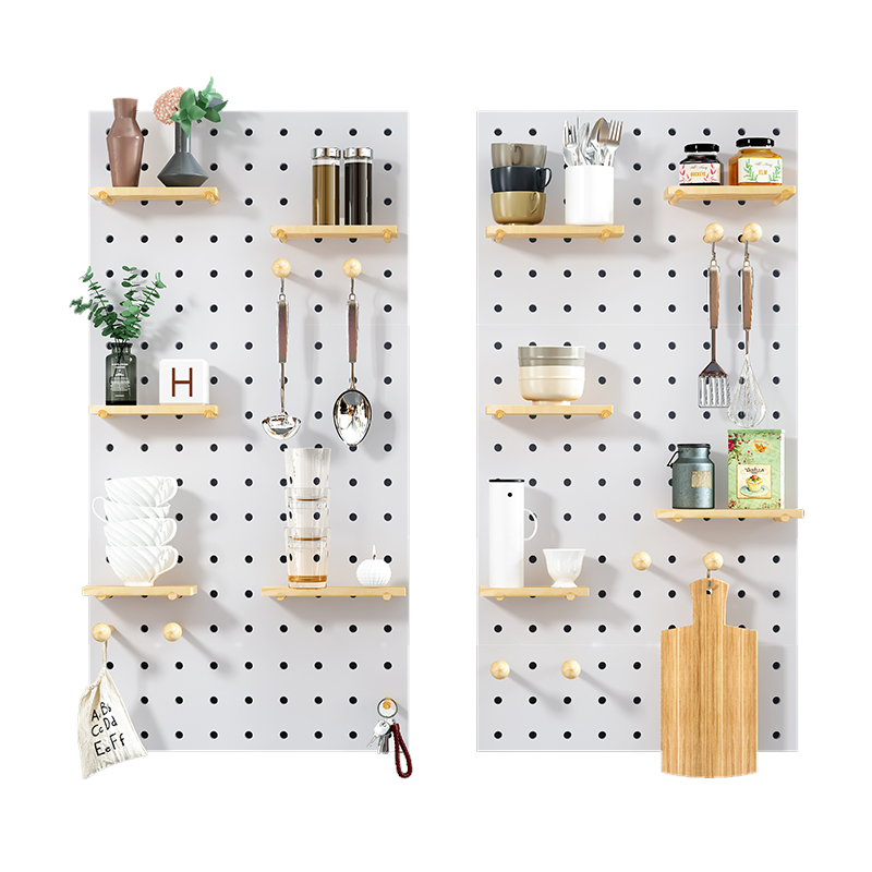 Solid wood hole board custom Nordic wood punch-free storage decoration background wall kitchen porch wall shelf