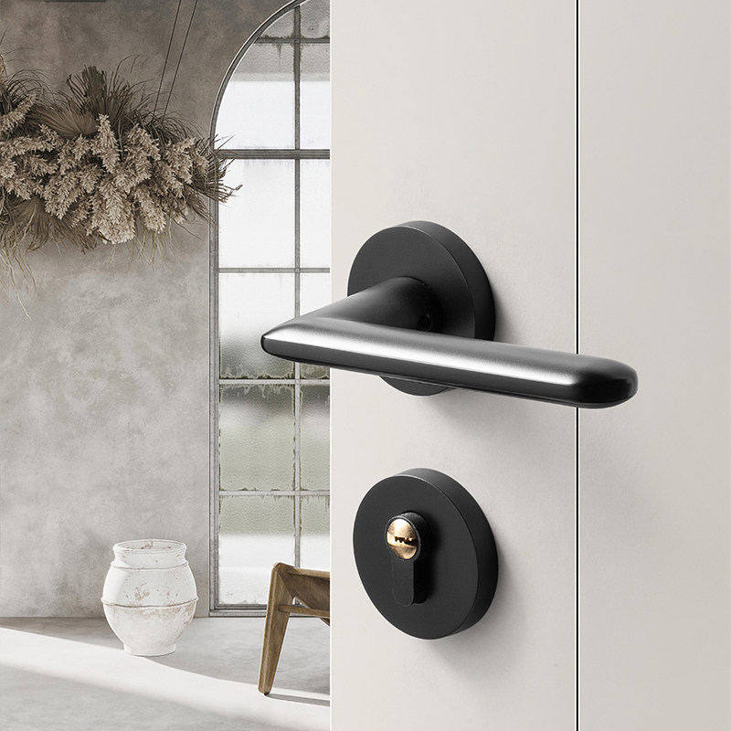 Simple two-piece door lock Nordic interior bedroom black gray door handle magnetic suction mute room door lock modern home lock