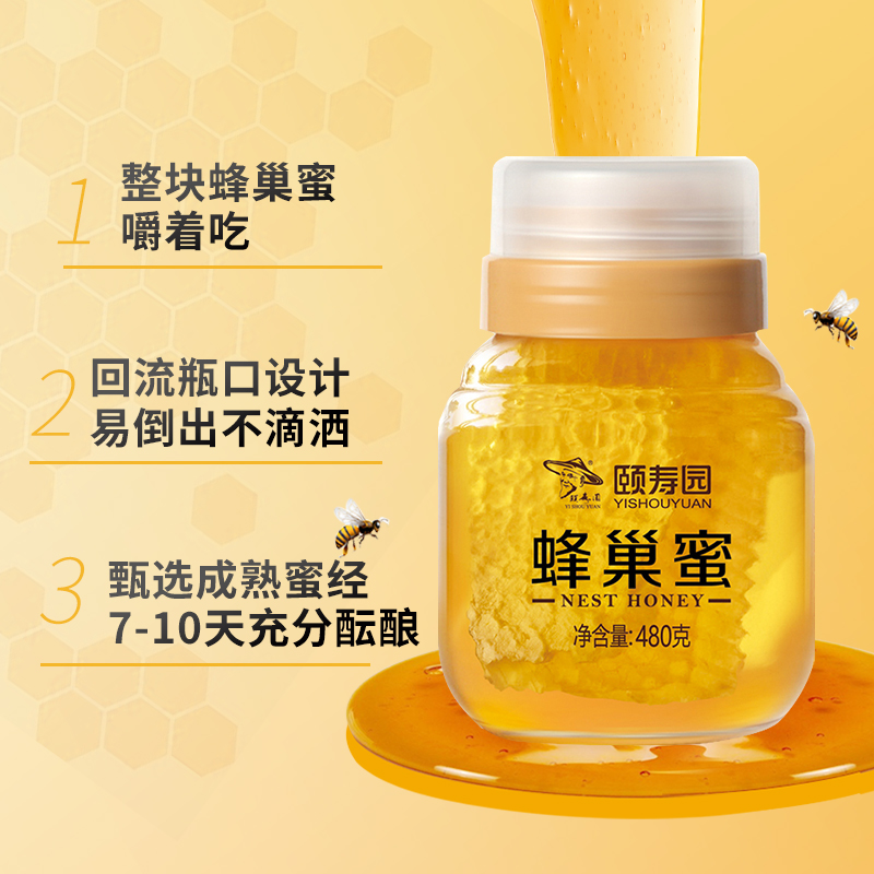 Yishouyuan honeycomb honey wild pure natural authentic farmhouse honeycomb honey acacia whole piece chewed and eaten 480g bottle