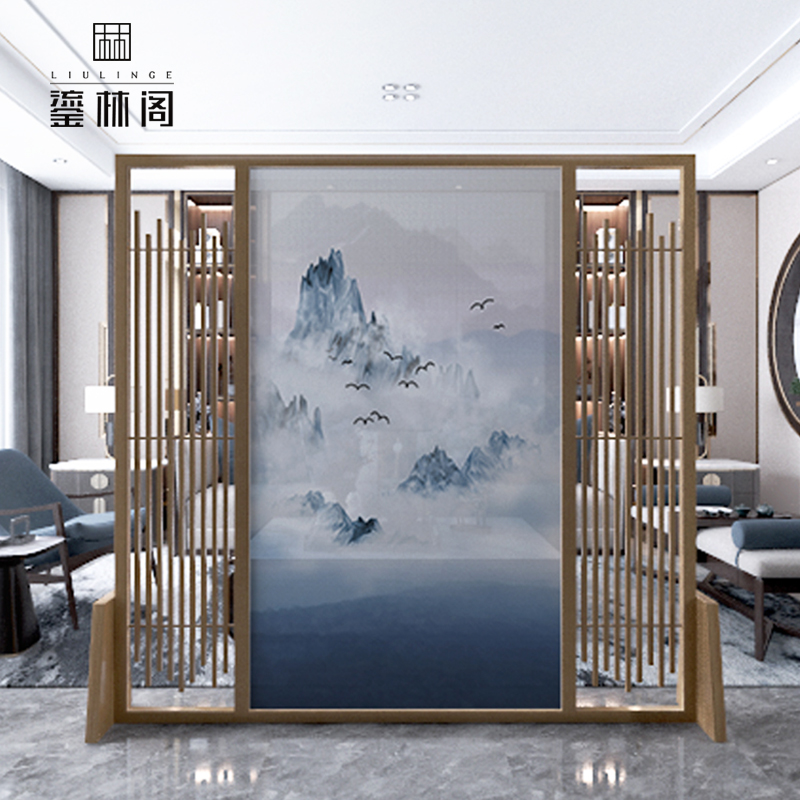 New Chinese screen Modern Modern Solid Wood hollow partition living room bedroom tearoom company office obscured customization
