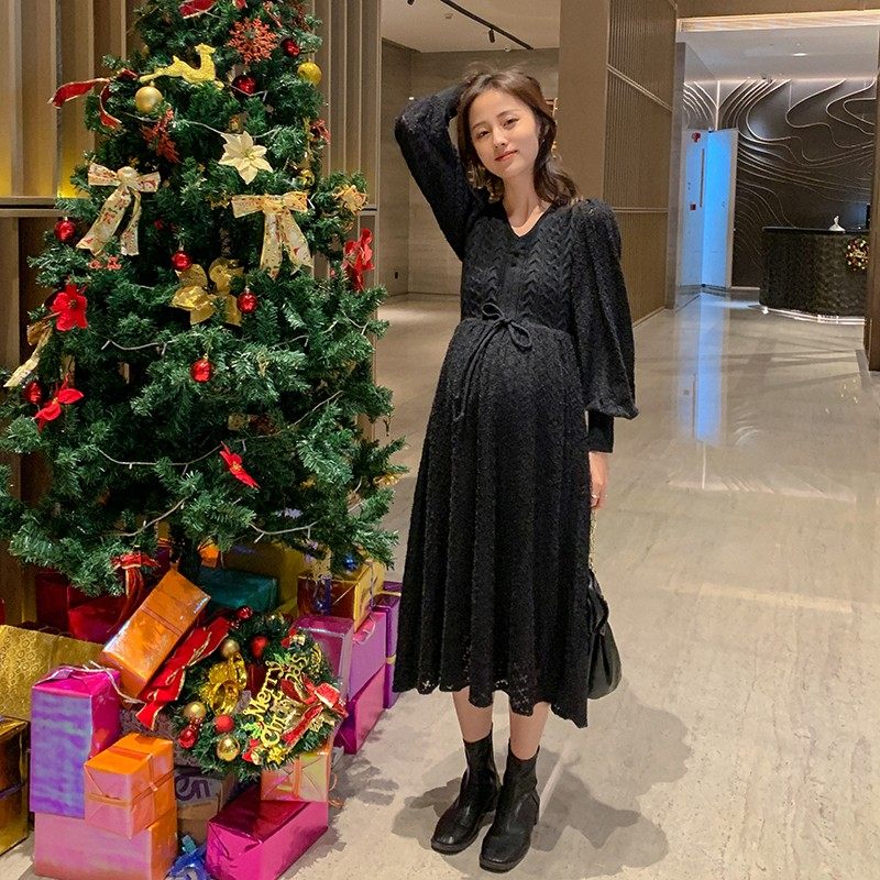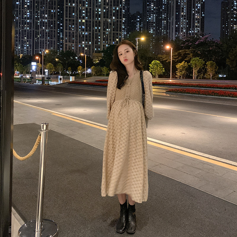 Maternity dress autumn winter fashion loose thin knit dress autumn long style celebrity temperament autumn wear tide
