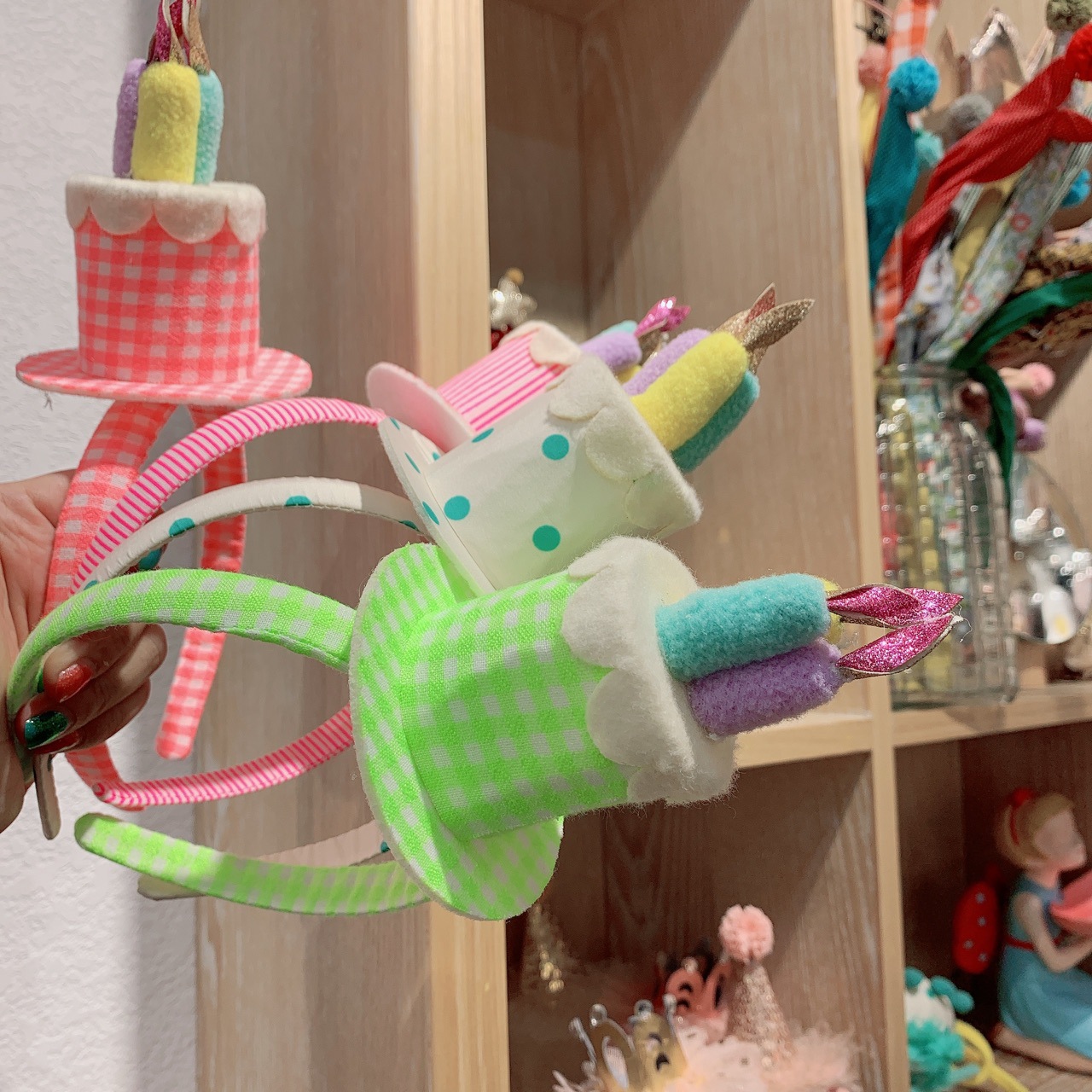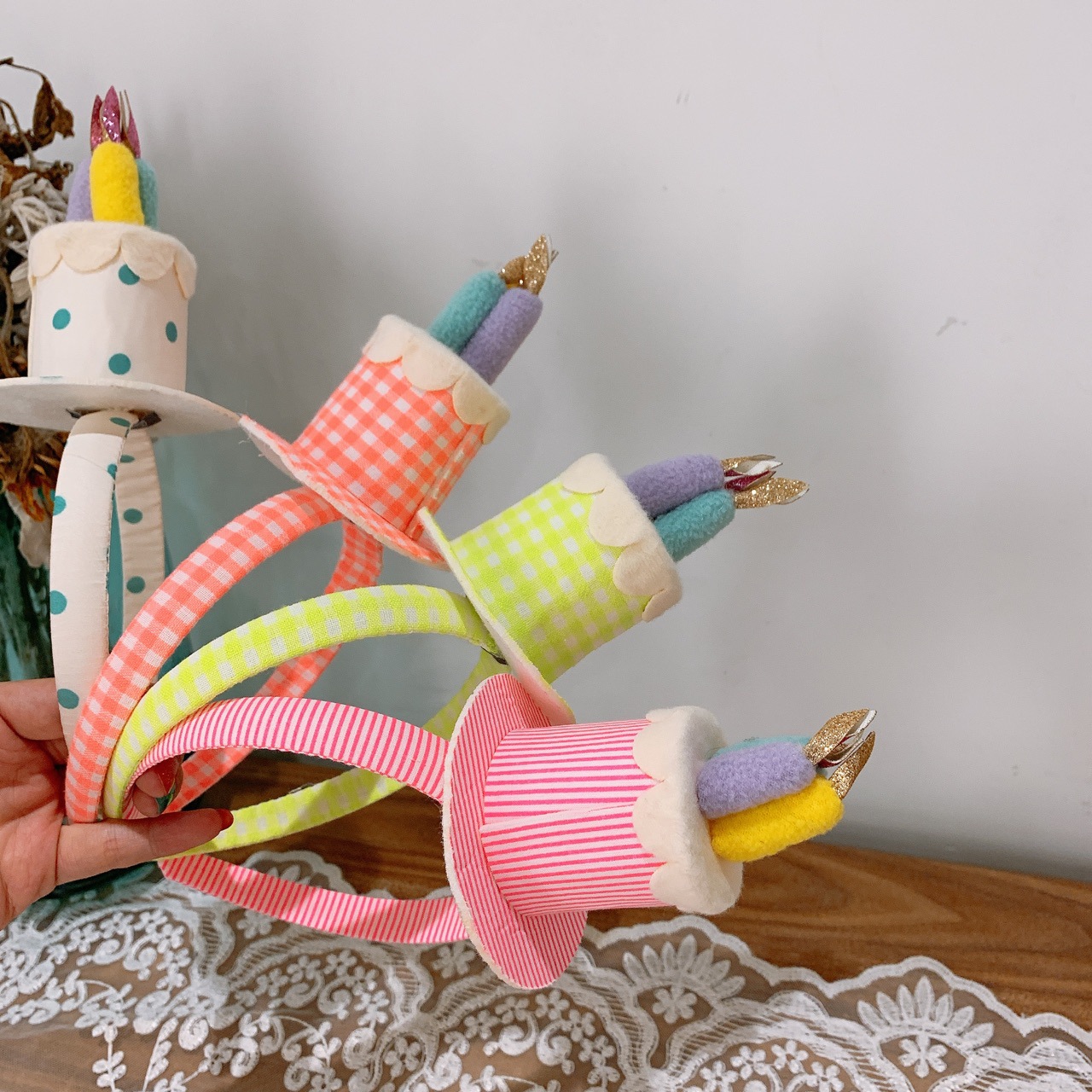 Green striped candle birthday hair band White little candle Birthday hair band Pink Striped candle Birthday Hair band Red plaid candle Birthday hair band Yellow wave birthday cake cap (L) Green