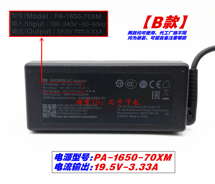 Original dress Xiaomi PA-1650-70XM 19 5V3 33A Power supply adapter 65W laptop charging wire