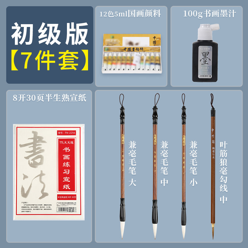 Chinese painting paint set Chinese painting paint 12 colors ink painting beginner entry tool set basic professional brush painting material primary school children's brush Chinese painting supplies full set of tools