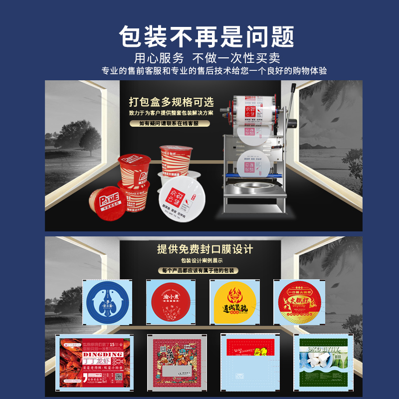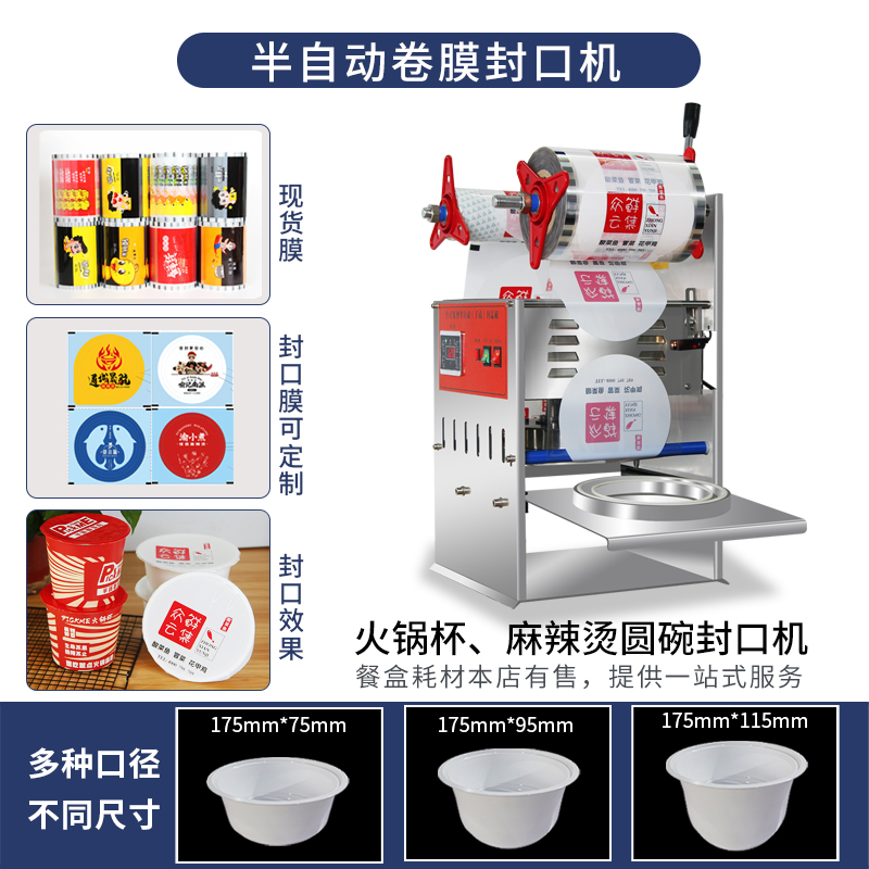 Automatic locking fresh lunch box sealing machine Takeaway hot pot cup round bowl baler Commercial sealing film machine Malatang riser