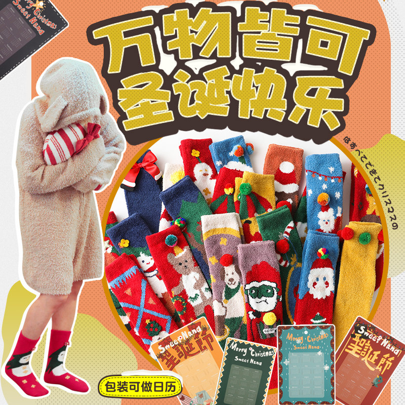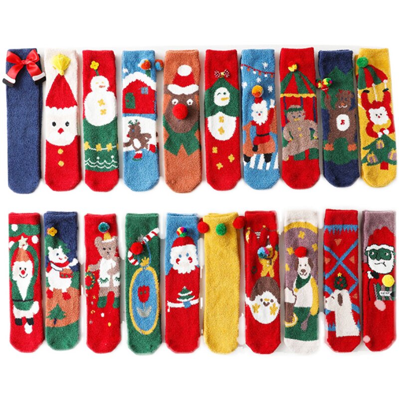 Miscellaneous, Christmas solid coral suede lovers parent-child Ins gift midbarrel socks thickened 4 double gift boxes