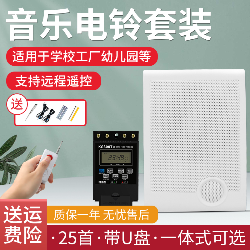 25 ordinary single bells (without timer) 25 ordinary bells (with timer) 25 ordinary bells without timer (with remote control 1000 meters) Ordinary bells 25 with timer (with remote control 1000 meters) with U disk single bell (without timer) with U disk bell set (with timer) With U disk electric bell without timer (with remote control 1000 meters) Integrated music bell (built-in timer)