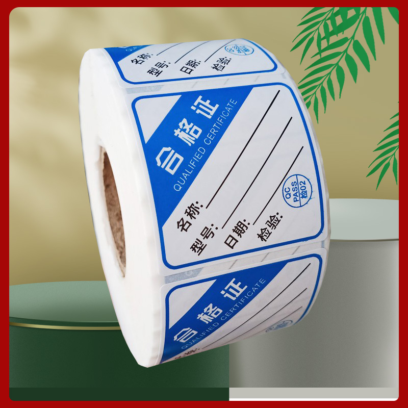 Rectangular blue red white product certificate label customized general sticker printing can be customized
