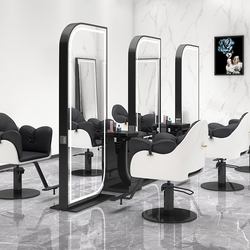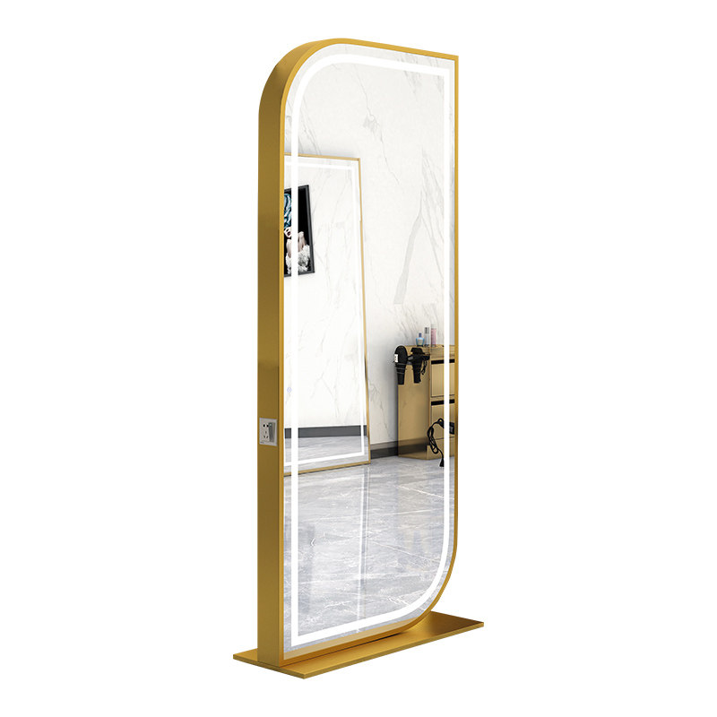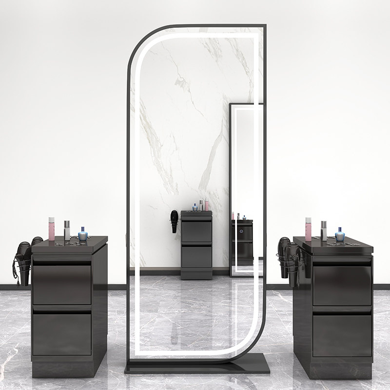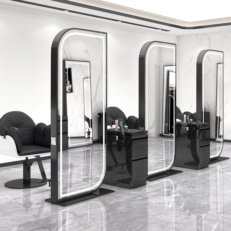 Double Sided Stainless Steel Barber Shop Full Body Mirror Hair Salon Special Thickened Beauty Hair Shop Floor Type Haircut Mirror Table With Lamp