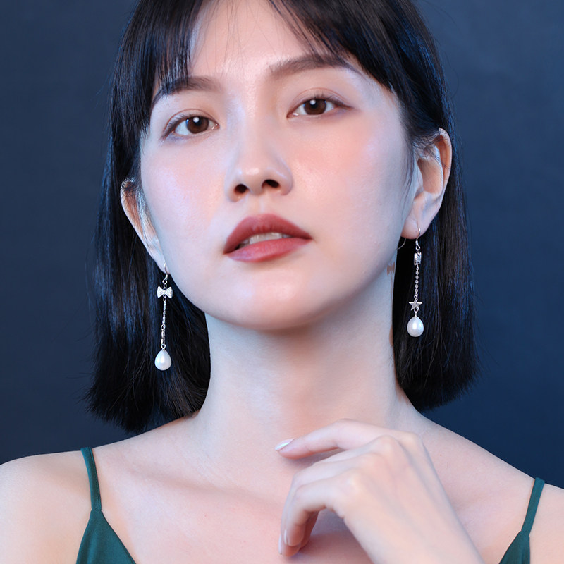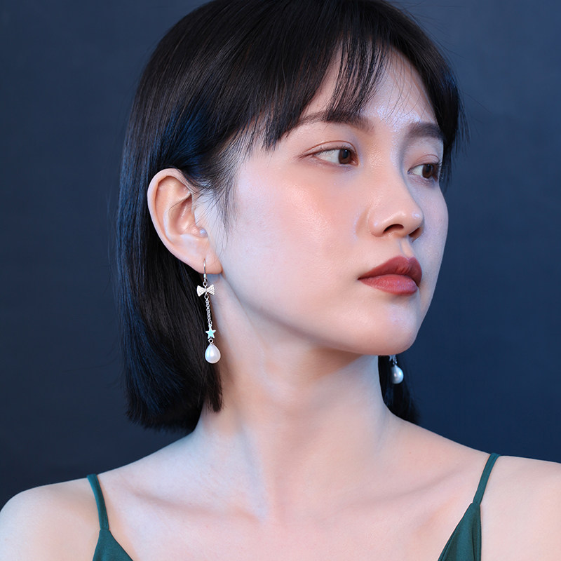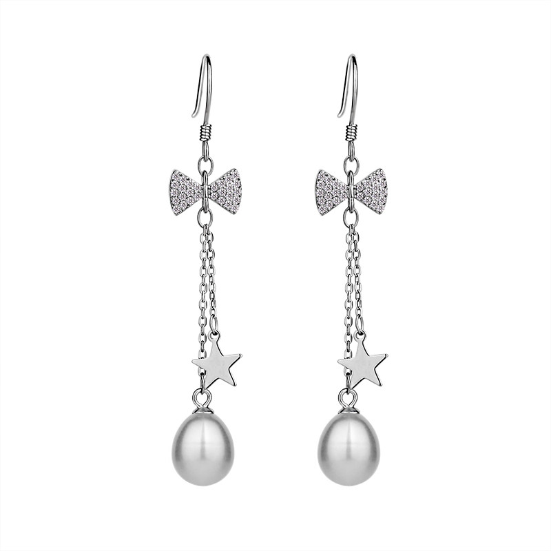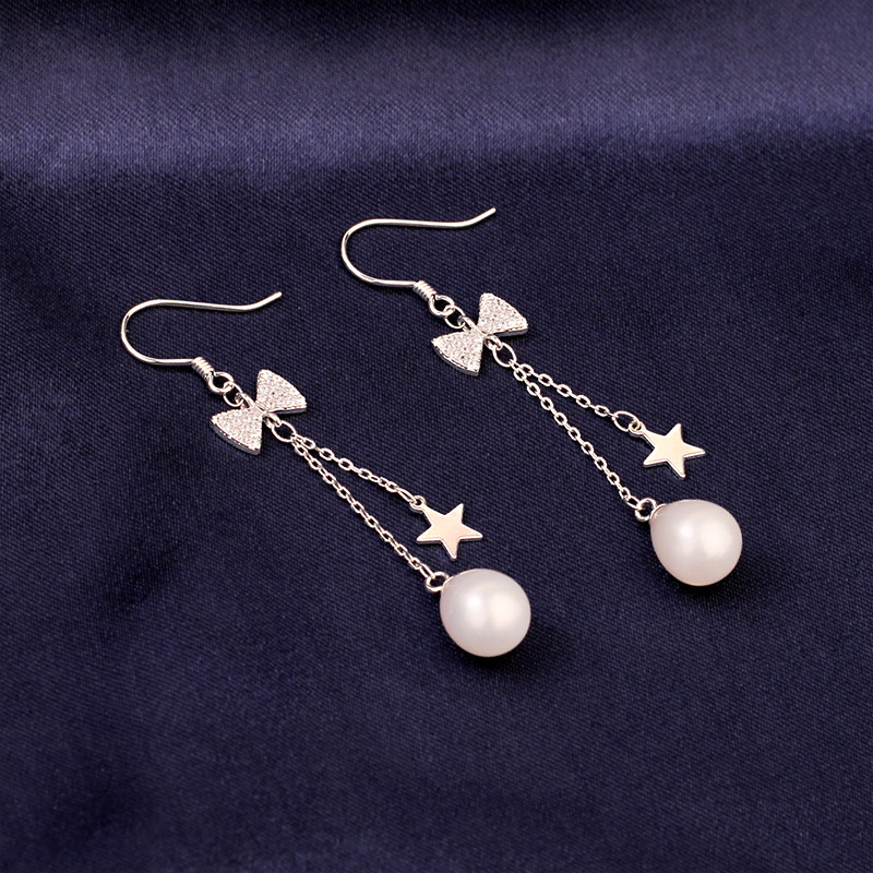 Bow five-pointed star long version natural pearl white bow five-pointed star long version natural pearl pink